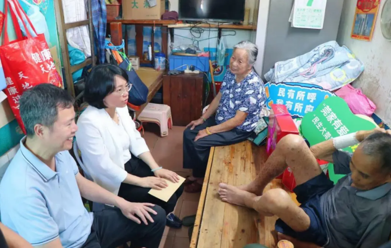 5月29日,虎门镇副镇长黄炜琴、虎门慈善会会长陈国安、秘书长黄绮琴,退役军人服务中心副主任张克亮、新湾社区书记邓建新等走进新湾社区三东老人院慰问困难群众。首先,慰问组走访低保对象兼困难军人邓伯(化名)。邓伯80岁,目前与妻子及患有精神二级残疾的孙子居住在三东老人院。夫妻二人年纪较大,身体状况不佳。其儿子及媳妇分别患有智力三级残疾和精神一级残疾。家庭残疾人口较多,经济来源少,生活较为困难。多年来,虎门慈善会关注和关心邓伯一家的生活需求,通过贫困残疾人帮扶计划发放生活补助金2.28万元;通过“民生微心愿”项目的临时生活救助发放补助金1.52万元。慰问组向邓伯送上节日礼品和祝福,详细了解他们日常生活情况和身体状况,叮嘱他们要保重身体,并向他们宣传各类帮扶救助政策和项目,让他们感受到社会大家庭的温暖。
